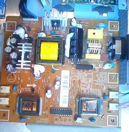 для ремонта произвел вскрытие обнаружил 2 протекших конденсатора 820мф 25в произвел замену на конденсаторы 1000мф 25в той же фирмы(CapXon) (2 нижних левых).
