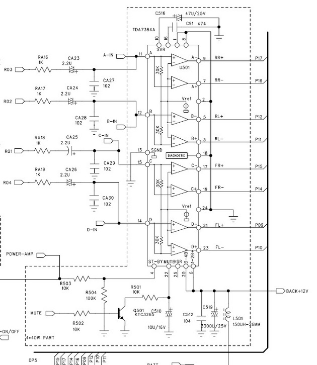 | припаял я C510 10 мкФ теперь даже напряжение до 2.5 в поднялось на выходах на колонки. MUTE я посмотрел оно с транзистора идет. |