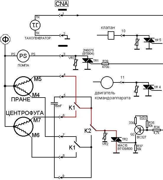 Ardo Maria 1001X по схеме имеет много общего с WD 1200 X, управление двигателями, как в схеме