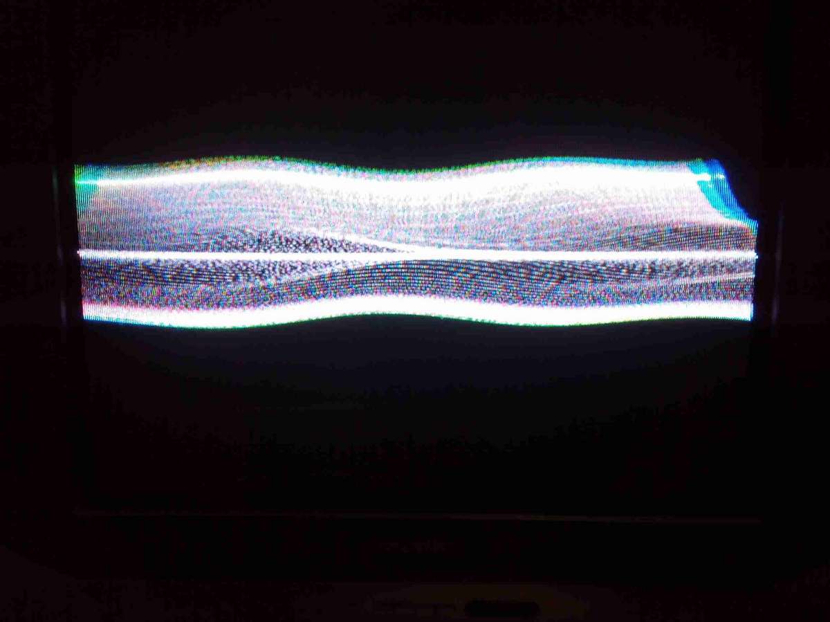 Вид экрана на фото. Видимых неисправностей на плате нет. Проверил диоды- нормальные. Электролиты не менял. Напряжение на LA78040N примерно соответствует.