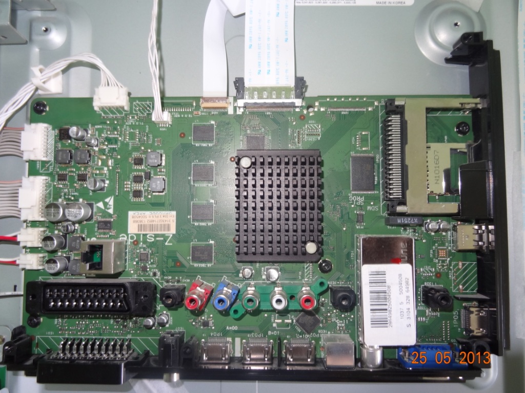 Умер T-con панели, я уже писал об этом, за последние полгода пришло 2 ТВ, с одной и тойже неисправностью. В первом случае помогла установка кулеров на чипы PNX. Во втором случае ничего не помогло. Чипы нашёл, клиент динамит с ответом. T-con-ов нигде нет, панель пр-ва Шарп. Находил на иностранных форумах что кто-кто находил в Израиле за 800 евро сам T-con.
