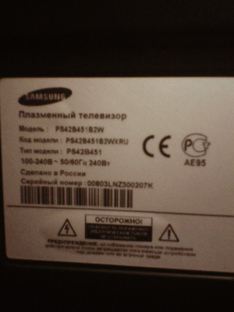 | код модели ps42b451b2wxru тип ps42b451 серийный номер 00803ln2300207k, питание как подписано на бп так и выходит, заниженного нигде нет, вот я и подумал может дело в этой плате? |