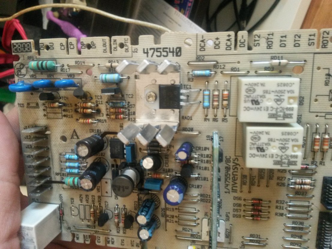 Добрый вечер форумчане)))) проблема такая сгорел насос соответсвенно полетел резюк на плате (выгорел полностью точнее) рядом стоящие почернели не могу номинал узнать сгоревшего , нашел другую такую плату(фото) в нашей широкой сети интернет ))) поставил резюк как там ,и заменил заодно все почерневшие вокруг. не помогло машина также не сливает воду на насос не идет 220в, подскажите мне может еще что по цепи насоса пропустил , ранее сталкивался с такими проблемами решалось все заменой можно сказать одного резистора и все работало...фото моей платы приклеплю. я незнаю может не того номинала резисторы... вообщем я в замешательстве...