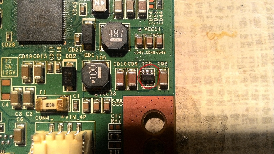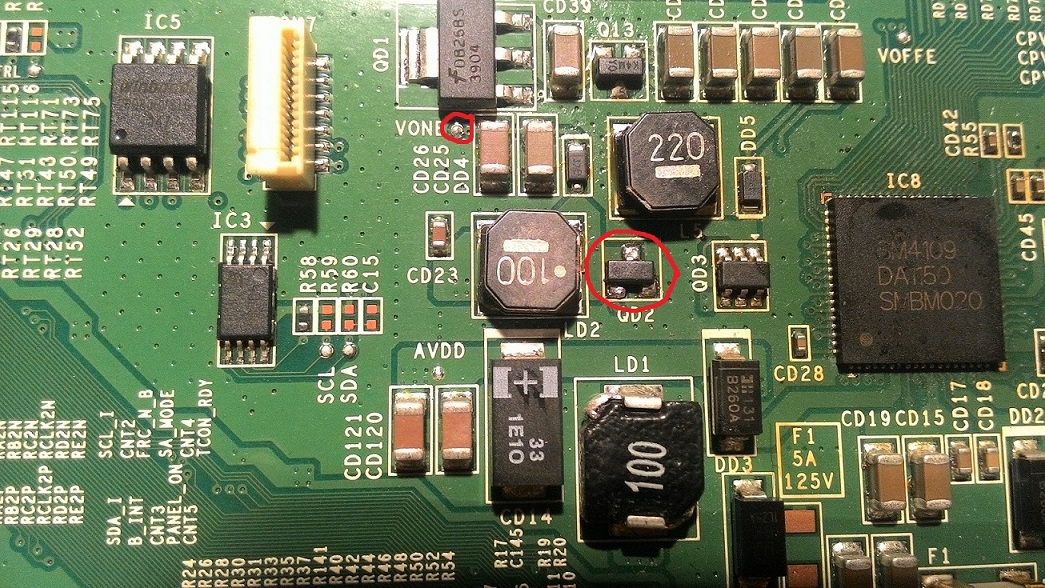 Парни прошу помощи, мастера в моем городке отказались от ремонта моего телика. Дочка залила телик с повивальника, вследствие огнил шлейф от tcov до матрицы а именно разьем на плате матрицы, я его восстановил, сейчас ситуация такая, телик включается но нет изображения, при детальном осмотре нашёл пробитые микросхемы, прошу сделать замеры на выходах и чем можно заменить. Пока хочу попробовать отремонтировать, если не получиться закажу плату в сборе.