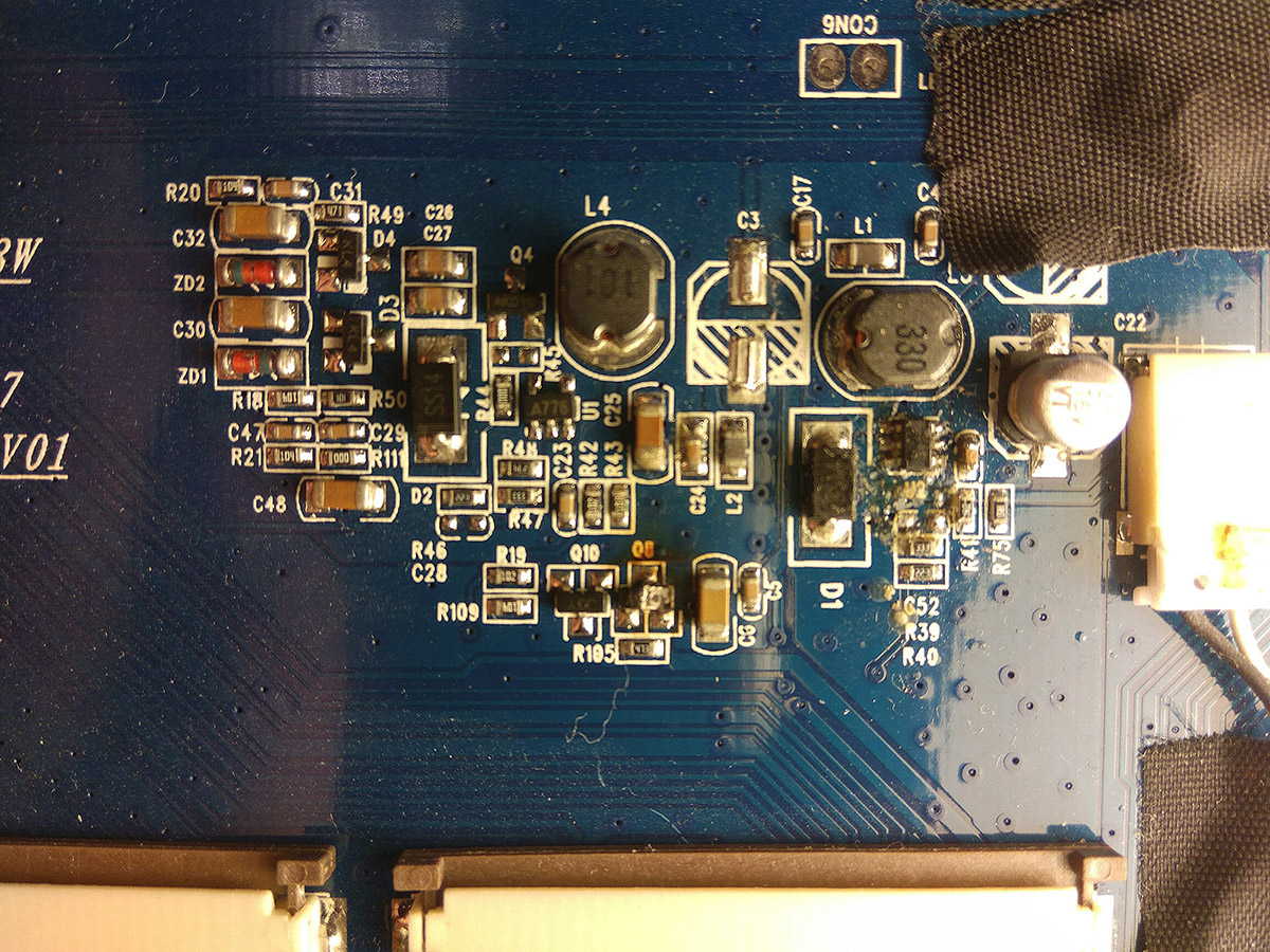 На плате LCD экрана автомагнитолы сгорел SMD элемент. Маркировка частично сгорела с частью корпуса элемента.
