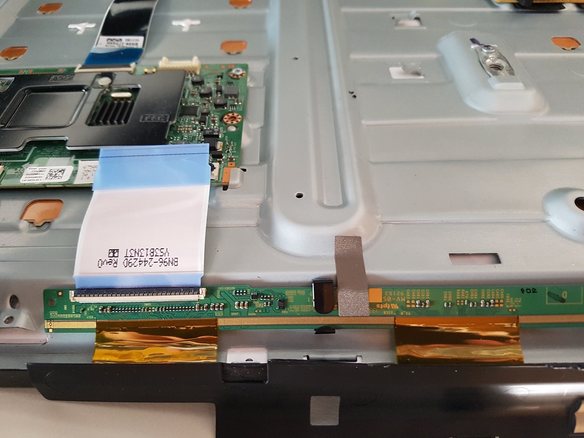 имею в пользовании телевизор UE55F6770. с него как с донора были переставлены все платы (main , плата блока питания и плата Tcon) они все идентичны. проблема осталась . шлейфы менял так же все . попробовал отсоеденить правую планку матрицы , она заработала ровно на левой стороне. правая сторона соответственно с переливами с белого на серый не сработала. есть уверенность что копаться надо на правой планке .помогите с советом . есть паяльная станция и опыт небольшой. навыки в электронике как у начинающего .на планке есть диоды.думаю может в них дело. плата tcon цокает когда моргает подсветка .как будто уходит в защиту из за КЗ . может подскажете какие именно купить для замены. фото прилагаю .