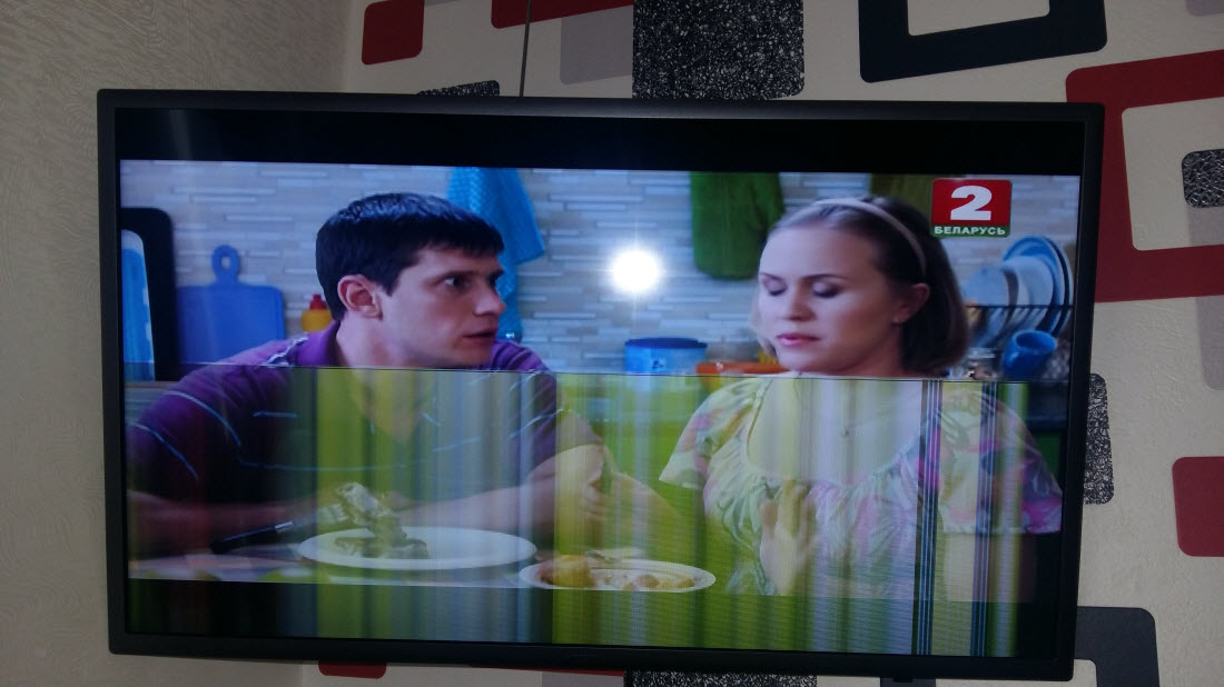 Сломался телевизор, пол экрана в зеленые полоски.... Случилось внезапно, просто после очередного включения такая вот картина.