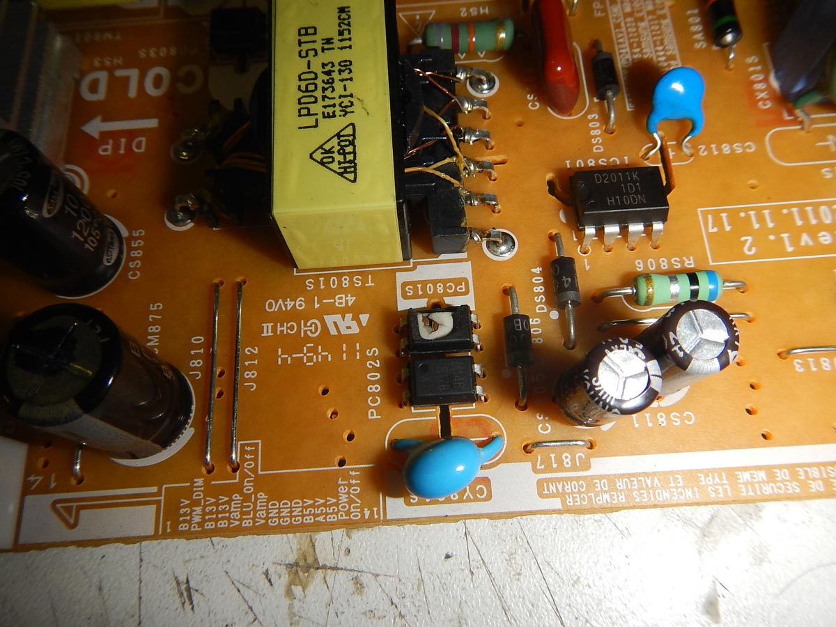 принесли только БП. Аппарат вроде UE40EH5300W. С оптопарой PC801S разберусь, а вот что такое ICS851?