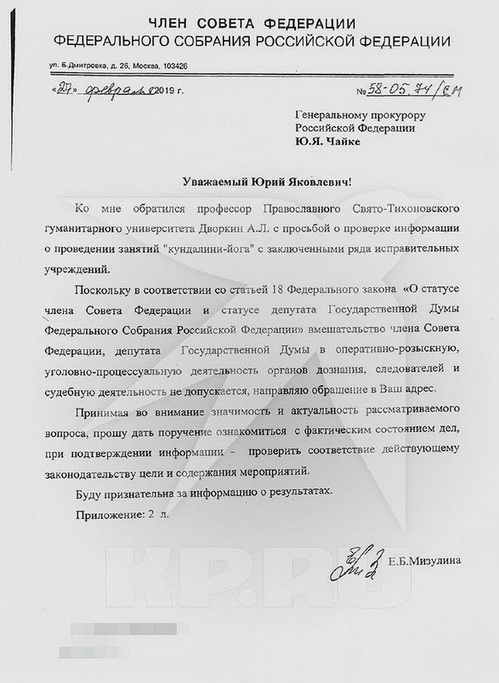 Мизулина отметила, что в своем письме в Генпрокуратуру, на которое ссылались СМИ, она не говорила о запрете йоги в СИЗО. «Это типичный пример распространения фейковых новостей», — сказала сенатор.