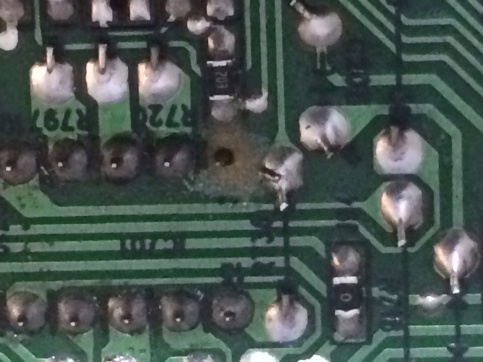 Расковырял аккуратно вокруг ножки плату, дабы найти дорожку, но так и не нашел