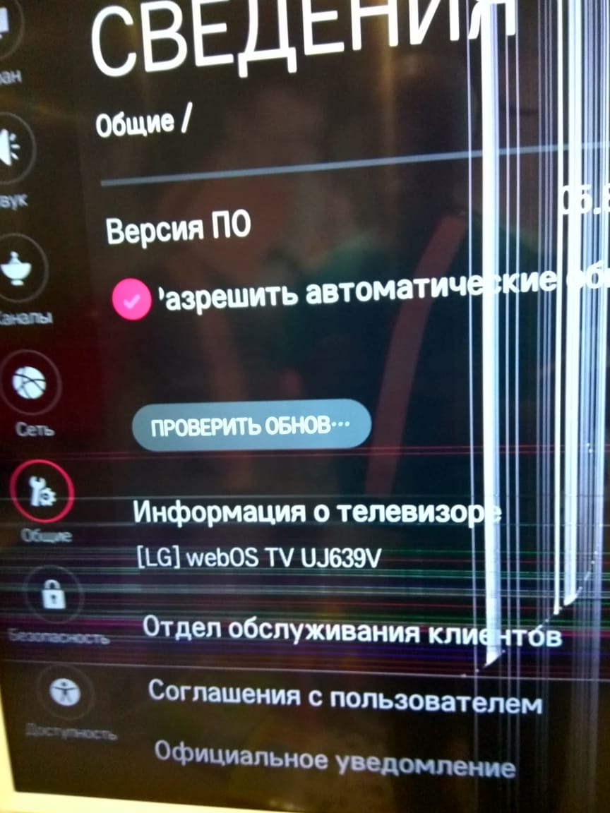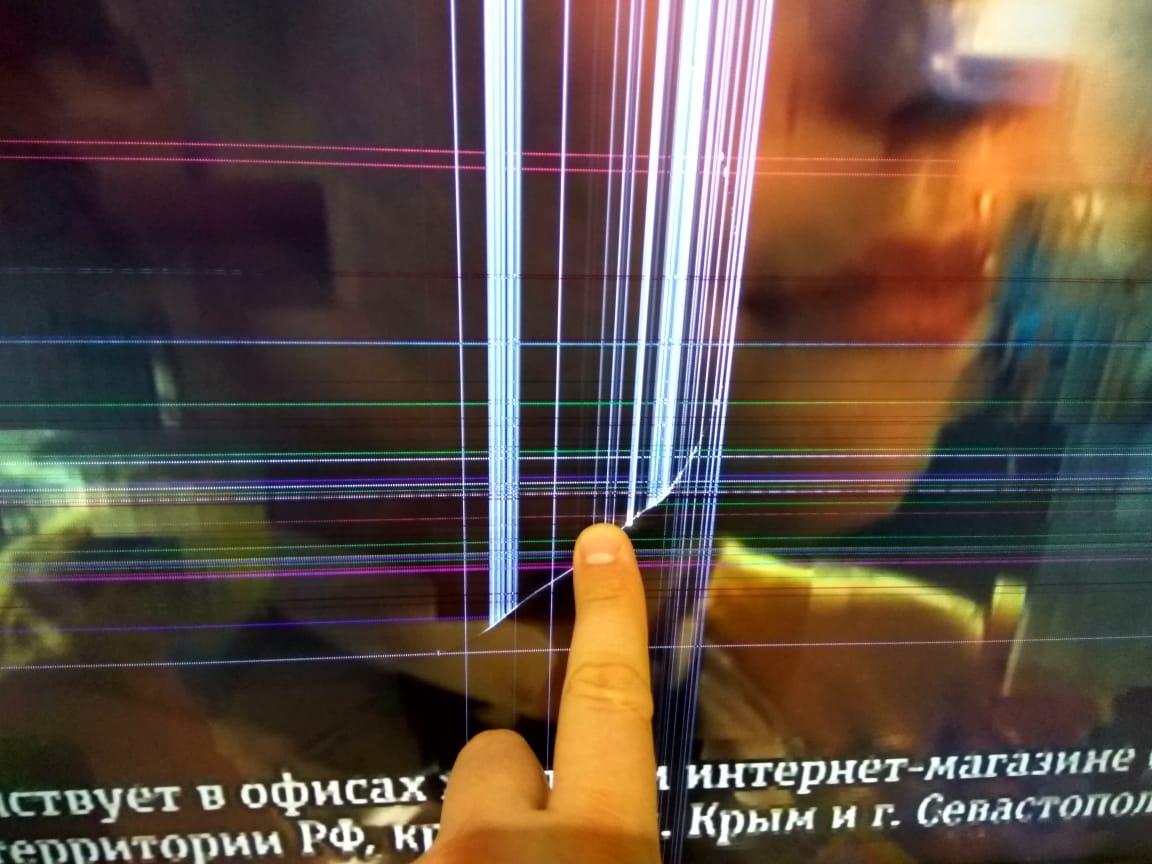 Купили давно телевизор LG 43UJ639V, недавно появились 3 полоски горизонтальные и вертикальные, а на пересечении была линия похожая на скол внутри, при нажатии на который она показывалась более отчетливо. Спустя некоторое время когда вроде бы все привыкли к шести линиям, появилось еще больше, сын нажал на эту трещину (см. прикрепленное фото). И тут встал ризонный вопрос, стоит ли как то заморачиваться с ремонтом (то есть ремонт будет не особо дорогой), или же дешевле купить новый. Такой новый стоит примерно 30-35к. И хотел бы еще уточнить что именно могли быть причиной появления таких линий? И возможно ли своими силами это как то поправить?