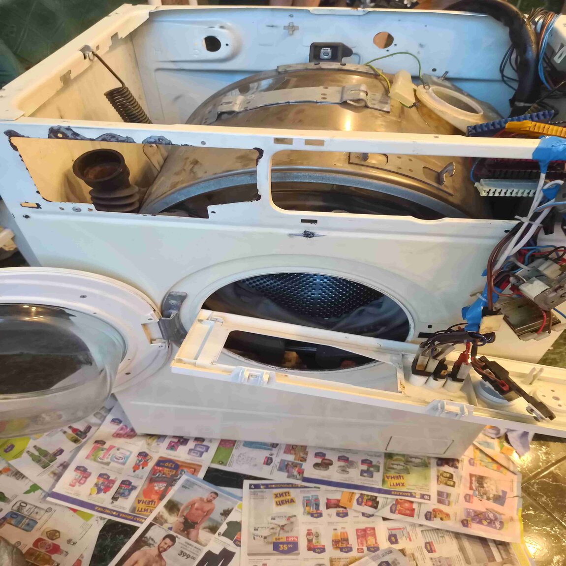 Так же не переключает программы 2,3,4 разобрал коммандоаппарат, на большом барабане не хватает 2 зубцов, восстановить их эпоксидной смолой не получилось. Может у кого-нибудь заволялся не нужный