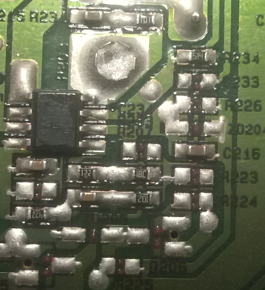 Телевизор LG 32LF580V-ZA не включается, после осмотра смд сопротивление в блоке питания по обозначениям 180 а звонится 15 кОм.Схему пока не нашел ,может у кого есть плата или знает, какое сопротивление его?По обозначению 18 Ом, но у меня сомнения.Даю фото этого участка схемы,на схеме вроде R233.