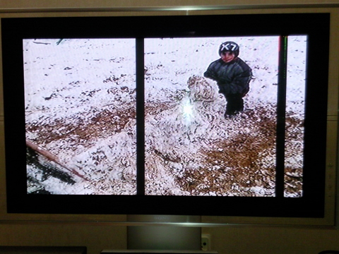На экране статично присутствуют две чёрные вертикальные полосы, вначале появилась одна, через неделю к ней "пришла" вторая. Внутри второй,в верхней части, имеются красные и зелёные вкрапления ( на фото видно).