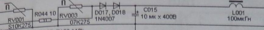 я в схему гляжу типовую. и по входу 220 там идет всего 2 варистора. и оба в параллель.