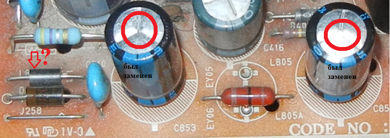вот не включается телевизор, перед эти пошел дым с правой стороны, вскрыл его, увидел два кондера вздулись по схеме С853 и С854, заменил их, включил изображения нету, а через несколько секунд задымил кондер С854.