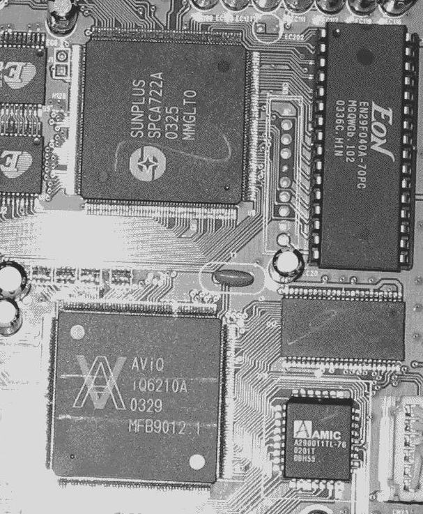 VFD- люмининсцентный дисплей (экран), AD16312=CS16312=PT6312 - VFD Driver/ Controller, так вот AD и CS это китайские братья PTC контролленра (драйвера). Если на фото все м\сх, то AViQ скорее всего не только серво (драйвера движков не видно), но и CPU и видеопроцессор. EON действительно флэшка только для SUNPLUS в которой ПО для работы DVD. читать (записывать) её программатором. две ESSI рядом с SUNPLUS это SDRAM для DVD. AMIC это флэшка для AViQ чуть выше флэшки SDRAM для AViQ.