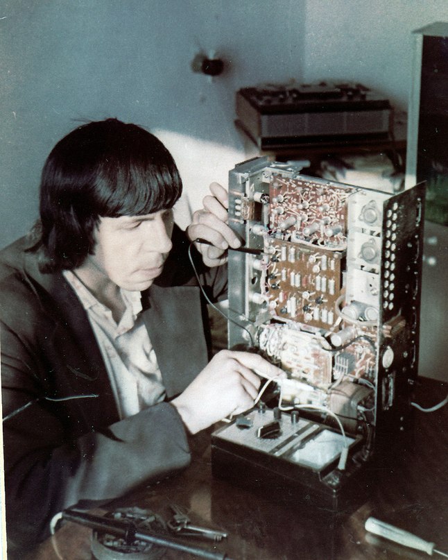 1. Радиоэлектроникой я увлекся ещё со школьных лет. Это 1982 год, монтаж светомузыкальной установки.
