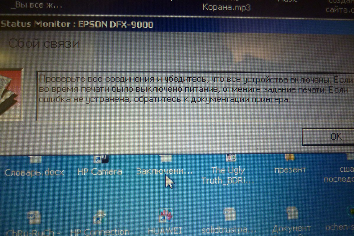 Матричный принтер модель DFX9000, с дефектом останавливается во время печати на 16 странице, у данного принтера проблема в том, что во вкладке "Принтеры и факсы" данный аппарат отображается, но в "диспетчере задач" его уже не видно. Аппарат подключен через USB 2, дрова рабочие скаченные с официального сайта. Тестовая страница печатается отлично. Во время проверки соединения с помощью программы Epson status monitor на дисплее появляется надпись"Проверьте все соединения и убедитесь, что все устройства включены. Если во время печати было выключено питание, отмените задание печати. Если ошибка не устранена, обратитесь к документации принтера."