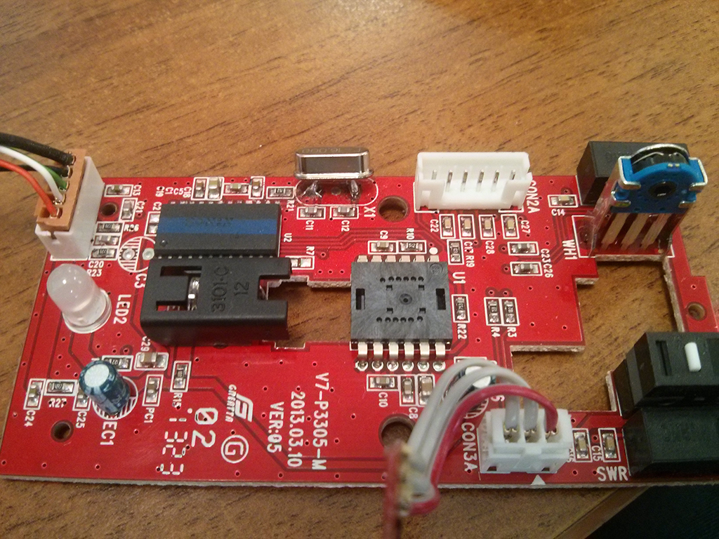 | Самые хрупкие детали, кварцевый резонатор и оптический блок. Меняйте кварц для начала. Провод надеюсь прозвонили? |