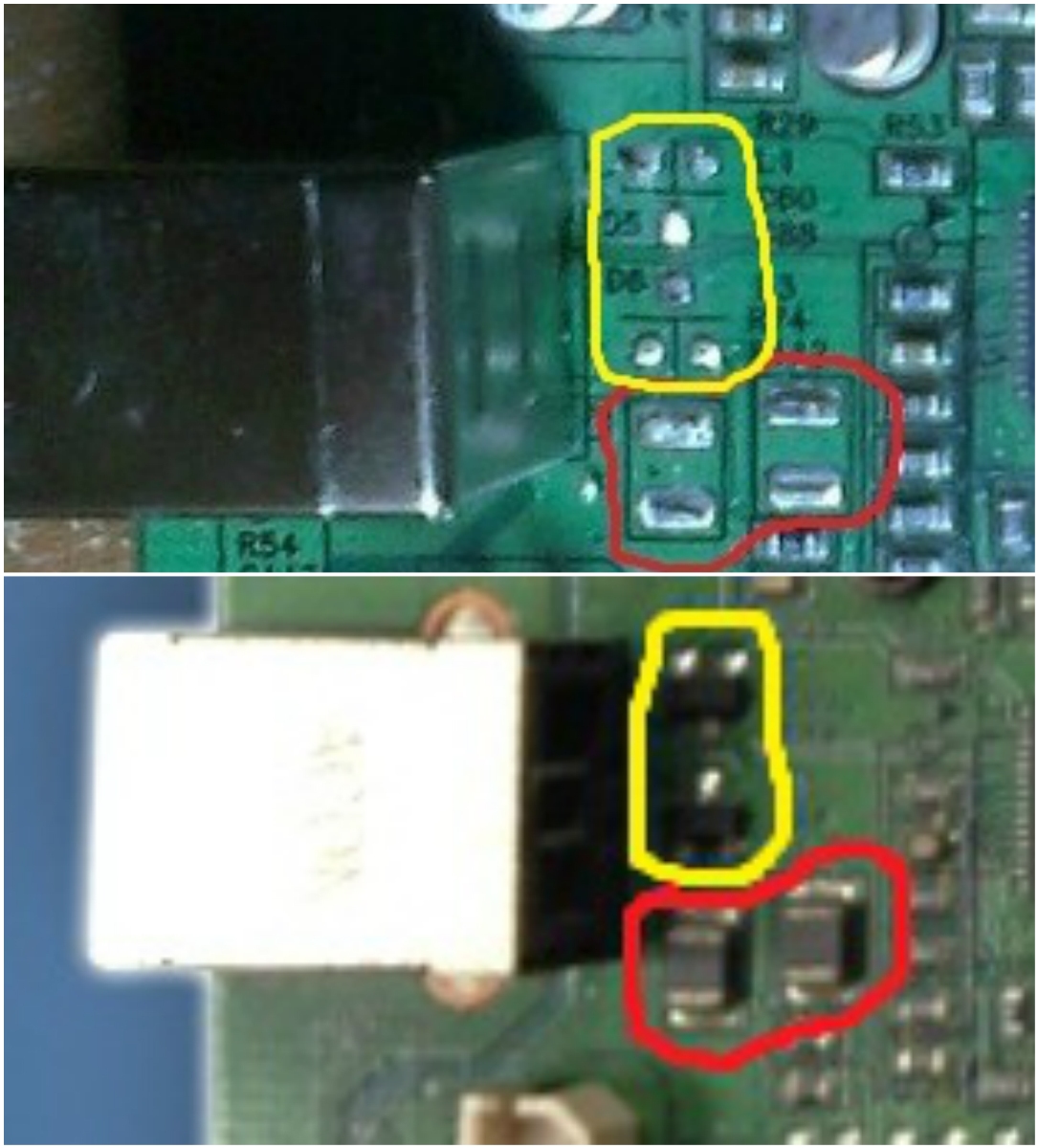 Что обведено красным---это дросселя, вместо них просто перемычки ставим, но лучше всеж с перемычками не включать разъем USB на горячую.