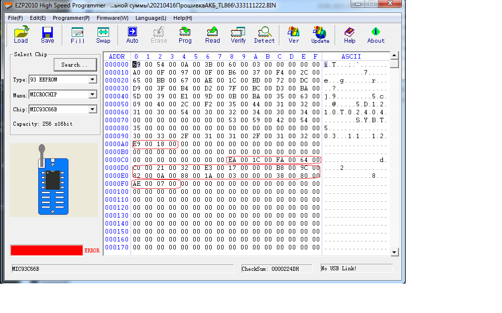 И после попытки считать данные с 93С66В с помощью программатора ChipProg-48 получил следующую картину: