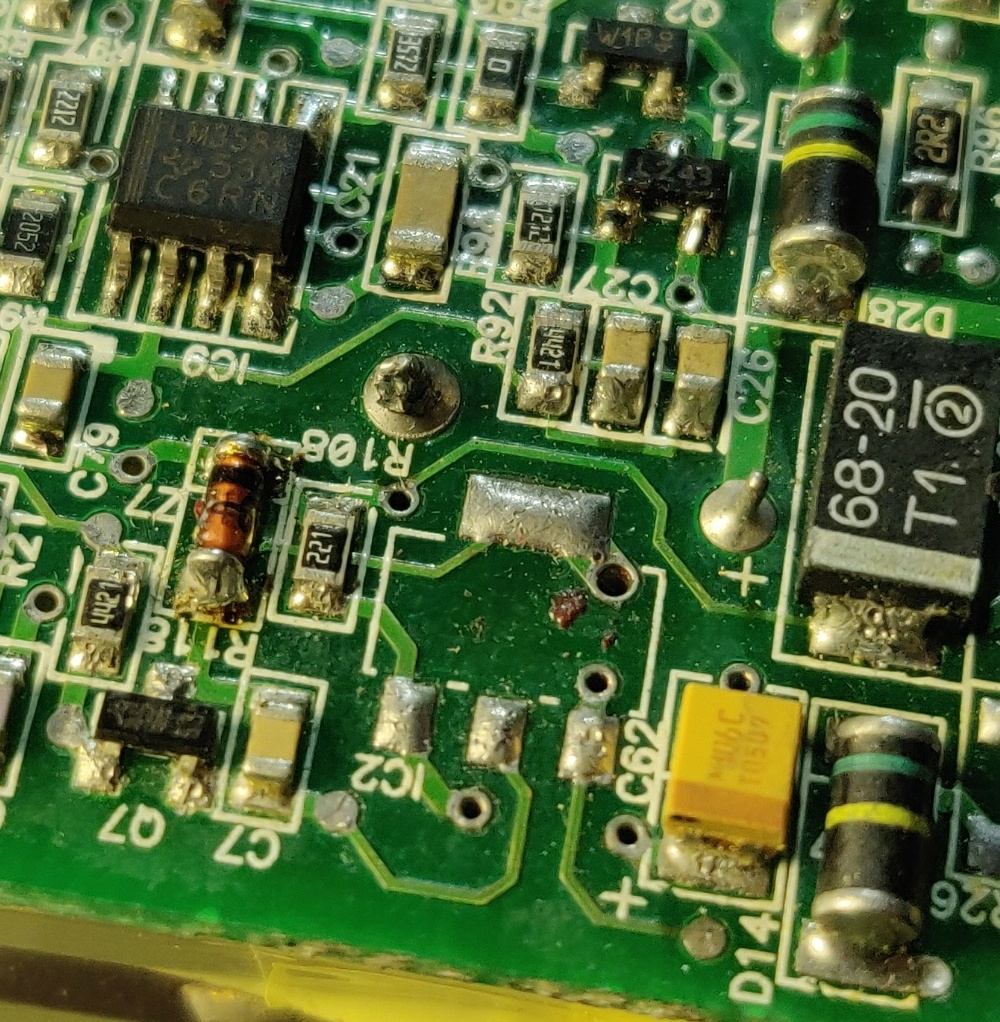 Есть микросхема с прогаром на месте маркировке