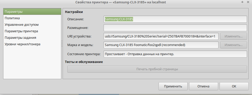 Достался для работы принтер samsung CLX-3185. На работе машины слабенькие и поэтому там стоит стоит linux mint 18.