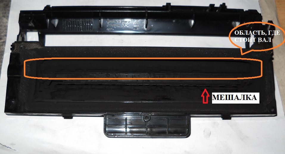 Мешалка- это пластмасска рядом с роликом подачи тонера |