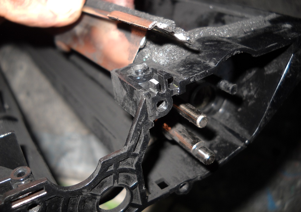 Насколько я понял, если применить силу и всё-таки оторвать оторвать дозирующее лезвие, наверное полимерная вставка выйдет и валик подачи тонера можно извлечь? Хотя может я ошибаюсь.