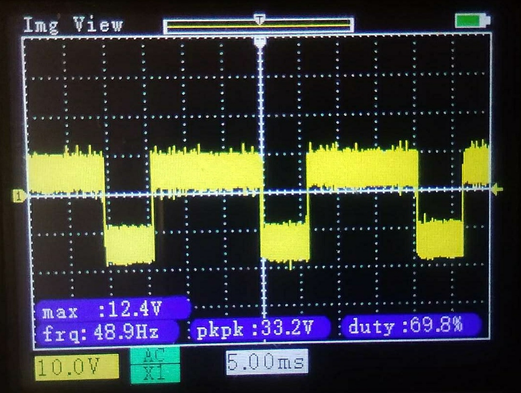 На выходе из преобразователя 12 В в высокое напряжение получаю кривую синусоиду, которая выпрямляется в 420 В. Ток холостого хода, без выходного преобразователя меньше 100мА.