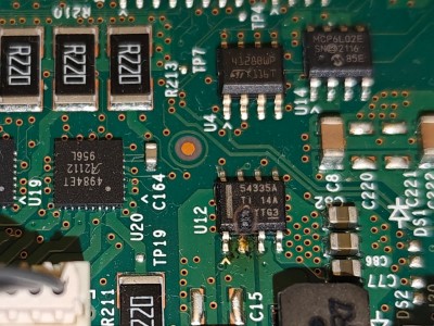 Я так полагаю , подразумевается преобразователь DC-DC 54335А, который после инцидента имел пробитый контакт ( отгорел от платы)? он был заменен на новый , но , к сожалению с абсолютно идентичным индексом микросхему не нашел , основной код (54335А) совпадает далее на оригинале было 14А G3 , на новой 29А G3 .