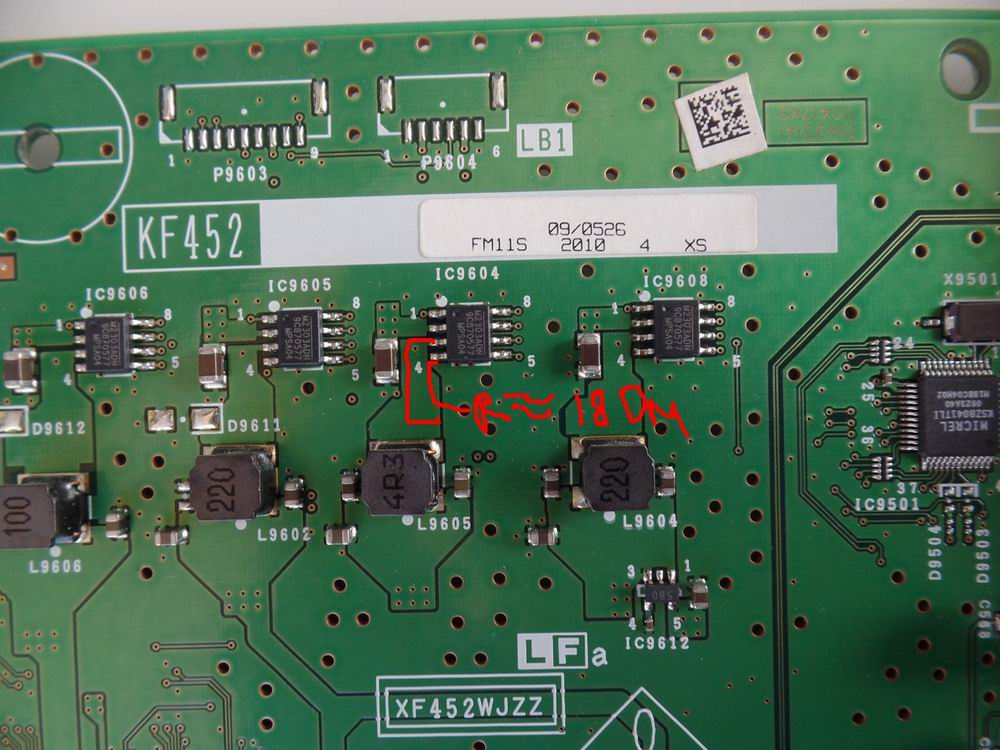 Добрый день. Телевизор не включается. В одно прекрасное утро включился через пару минут выключился и в течении 10 минут после включения выключения время сократилось и в результате только мигающйи лед. вызывал мастера - сказал что скорее всего материнская плата. При попытке войти в сервис экран не запускается сервисные кнопки позволяют только увидеть изменение мигающего индикатора на передней панеле. При обычном запуске лед мигает ровно с паузой в секунду, после комбинации (не помню точно -программа ввод пауер) на мгновение загорается индикатор секунды 3 горит ровно и начинает маргать быстро два раза между "два раза" выдержанная пауза в секунду и так далее. Если кто знает прошу подсказать где глянуть и куда тыкнуть ( схему на этот майн я не нашел). Живу в Подольске - пытался найти мастера для дальнейшего ремонта - не удалось. И теперь имея желание восстановить телевизор, но не уверен в точности диагностики того мастера, ищу доброго человека, который мог бы мне помочь восстановить - я мог бы приехать с телеком в мастерскую там где есть такая материнка или привезти свою материнку или купить новую материнку. Если есть возможность помогите чем сможете. Подольск Москва ближнее Подмосковье. высылаю фото той части материнки на которой меня терзают смутные сомнения. - но без схемы я не знаю куда и от куда.