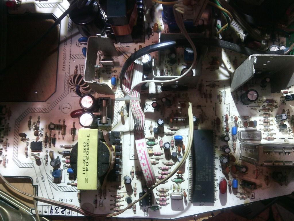 кадровая TDA7056. шасси S-1103 неисправность :При включении была большая громкость ,после замены микросхемы памяти 24co8wp все встало на свое место ,но растр по горизонтали увеличилось ,устанавливал чистую память,В интернете скачал прошивку родную но половину каналов не настраивается .как зайти в сервисное меню ,чтобы уменьшить размер растра по горизонтали,