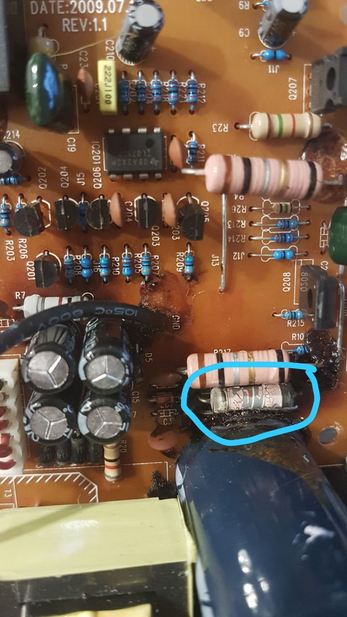 вскрытие показало что сгорел резистор (R209) и возможно катушка индуктивности (J16)