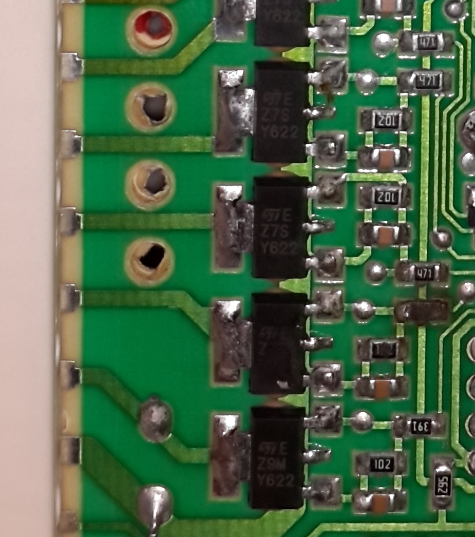 Здравствуйте. ПММ Индезит IDE 44. Вылетел контроллер. Ошибку выдает А99. Похоже выгорел симистор с обвязкой. Прошу помощи с определением номиналов симистора (на фото которые соседние такие же как и сгоревший) и навесных элементов.