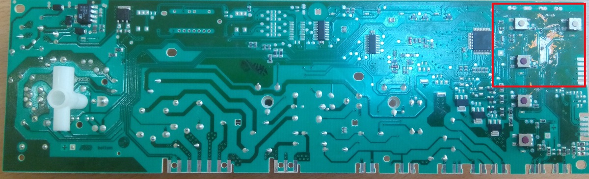WHIRLPOOL AVG 330 на плате выломаны резисторы возле кнопок и соответственно нет управления. Подкиньте фото платы в месте кнопок.