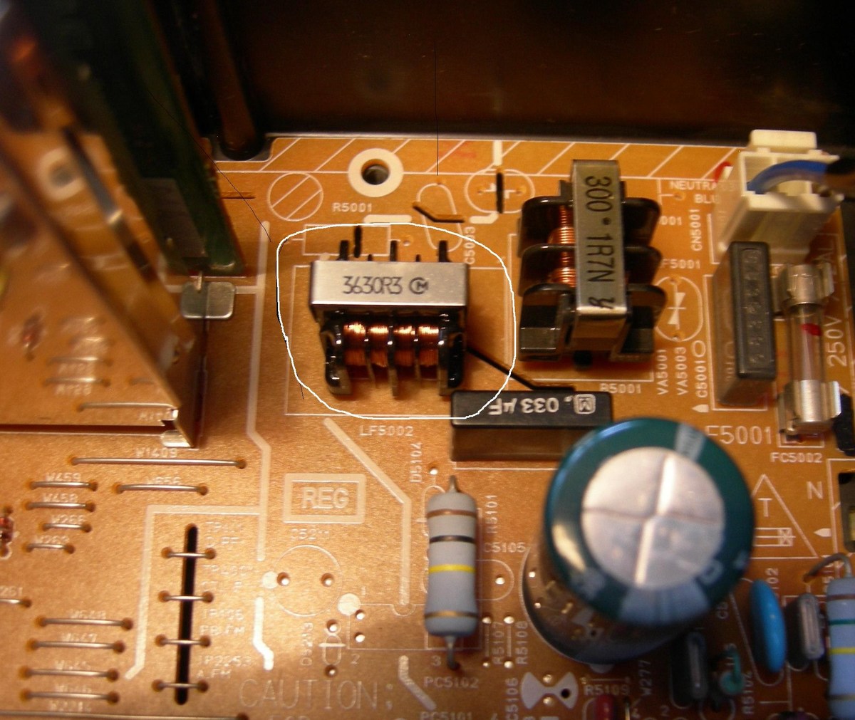 Plintus, LF5002-совершенно лишняя деталь. Можно заменить перемычками. Удалить VA5001, VA5003, C5001, C5002, SG5001, VA5002,R5001, C5003. Все это лишнее. Все будет работать без них.