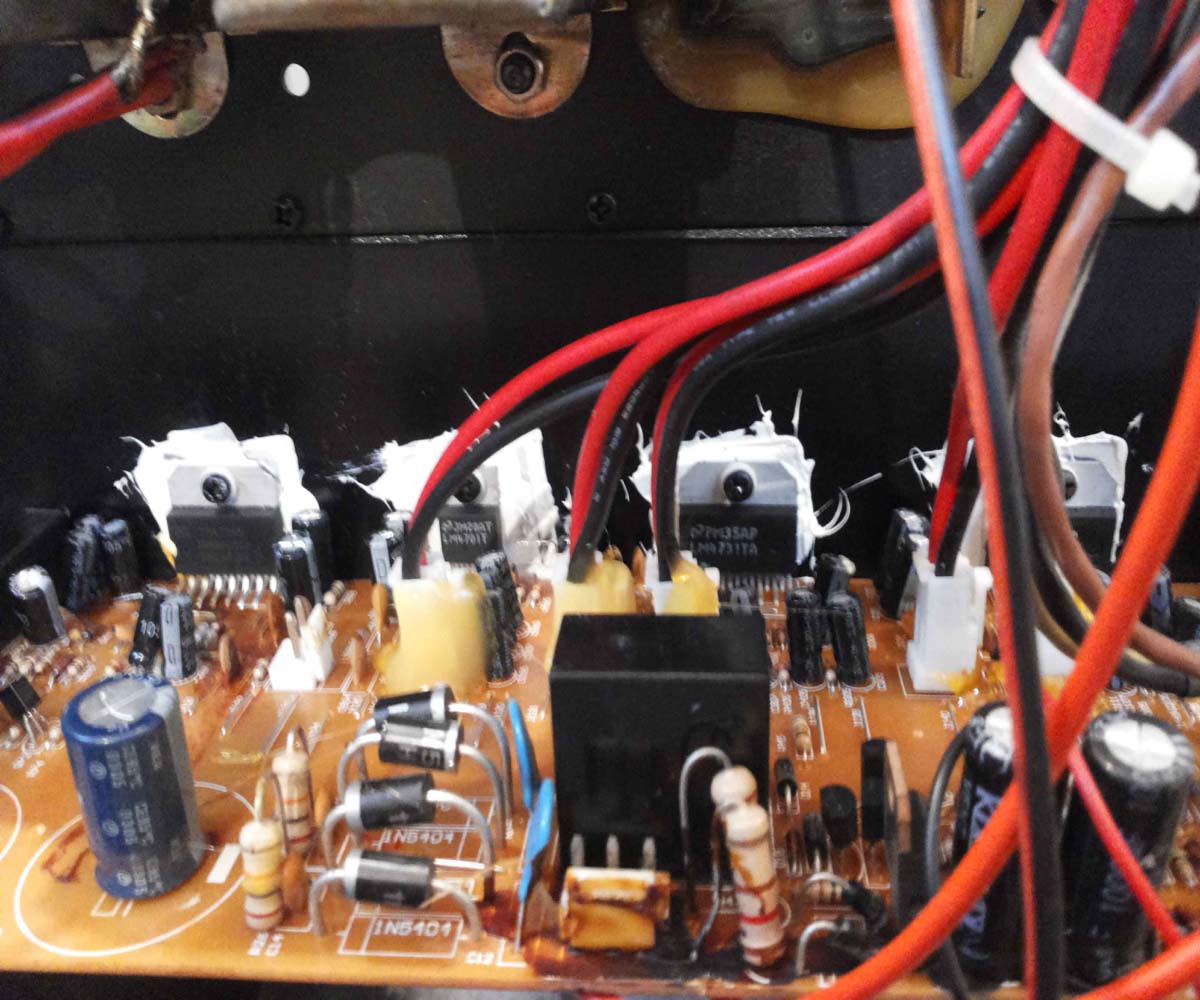 Предполагаю, что должен быть тороидальный трансформатор 17.5V со средней точкой. Литы фильтра 1000uf-35v.