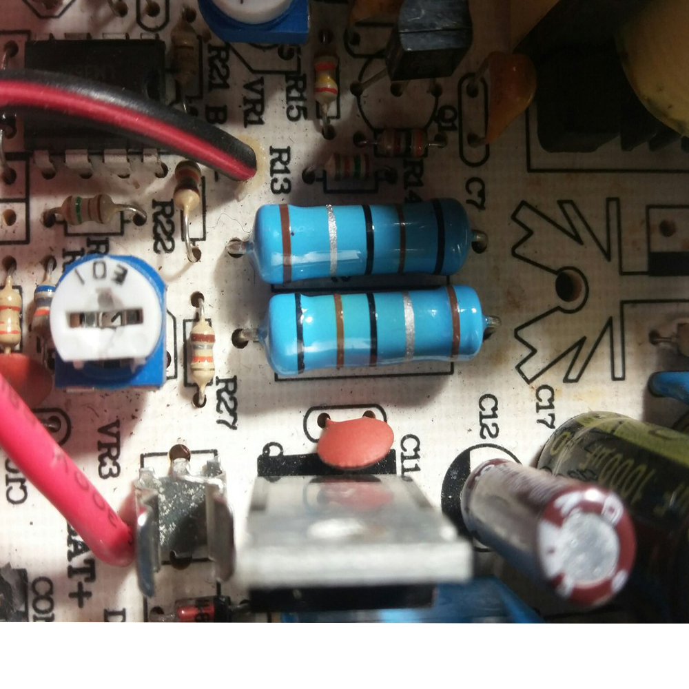Это блок питания домофона (Kenwei KW-4HPC) плата называется UPS TB-0301 (VP3.1N NEW) вроде как под этим названием я её нашёл) подскажите номинал резистора, ни одна программа не знает его номинала) вернее знает но не понятно точно на сколько он на 810 Ом или на 1,8 кОм)