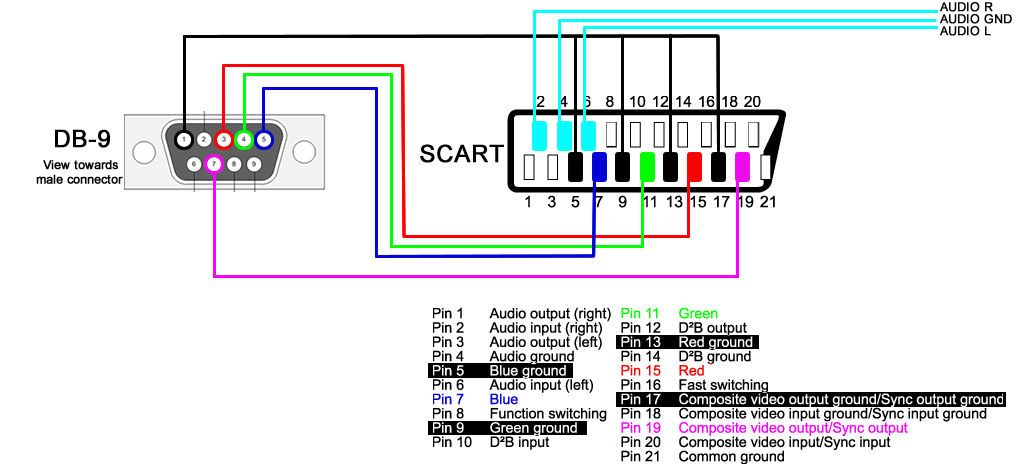 Или, может, у тебя на приставке разъём типа DB-9 (мониторный) присутствует? Тогда так: