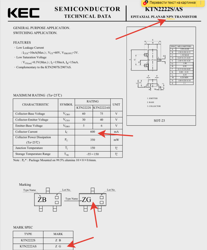 маркировка которых на sot-23 корпусе ZG и ZH