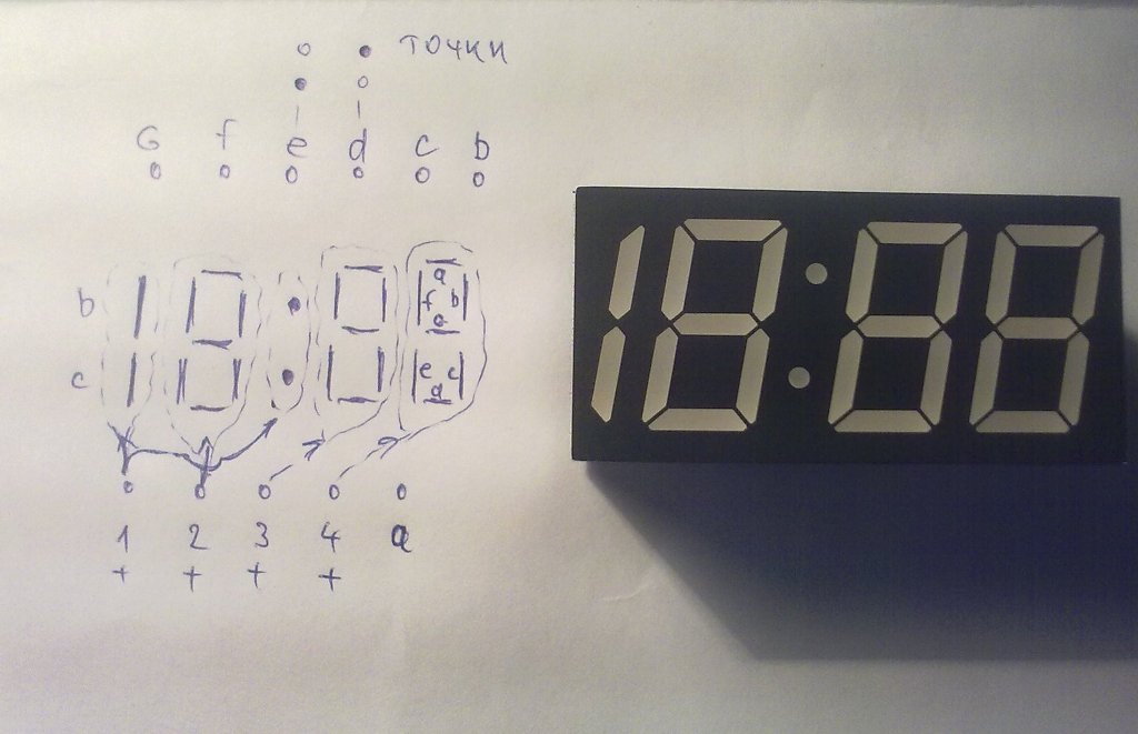 Извеняюсь - не указал точки на индикаторе и "C" и 'H" это одно и то-же,индикатор должен быть с общим анодом, лишние символы (слева) закрасить маркером.