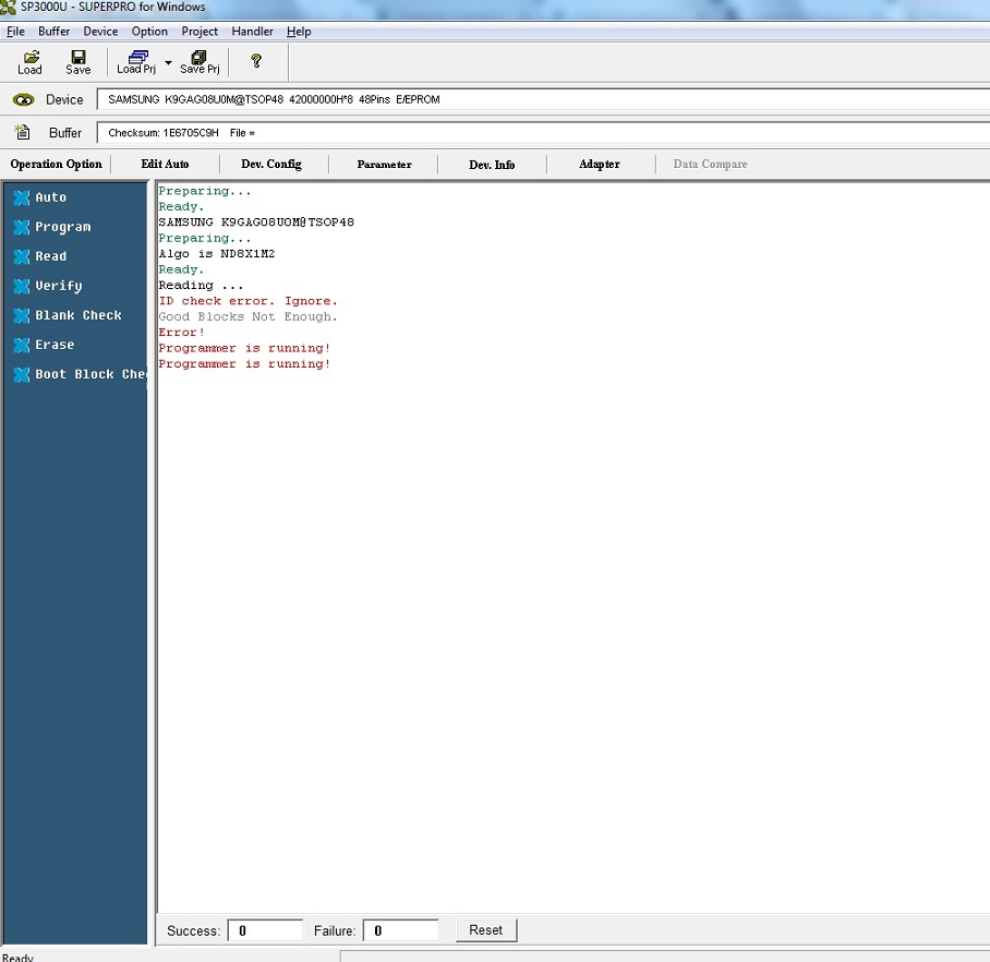 misha7, может программматор SUPERPRO 3000u не поддерживает эту флеш K9GAG08U0E ?