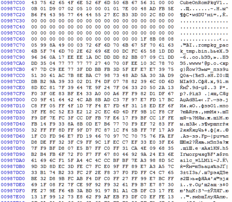 с адреса 00987с00 вставляем скачанную прошивку с расширением .pkg