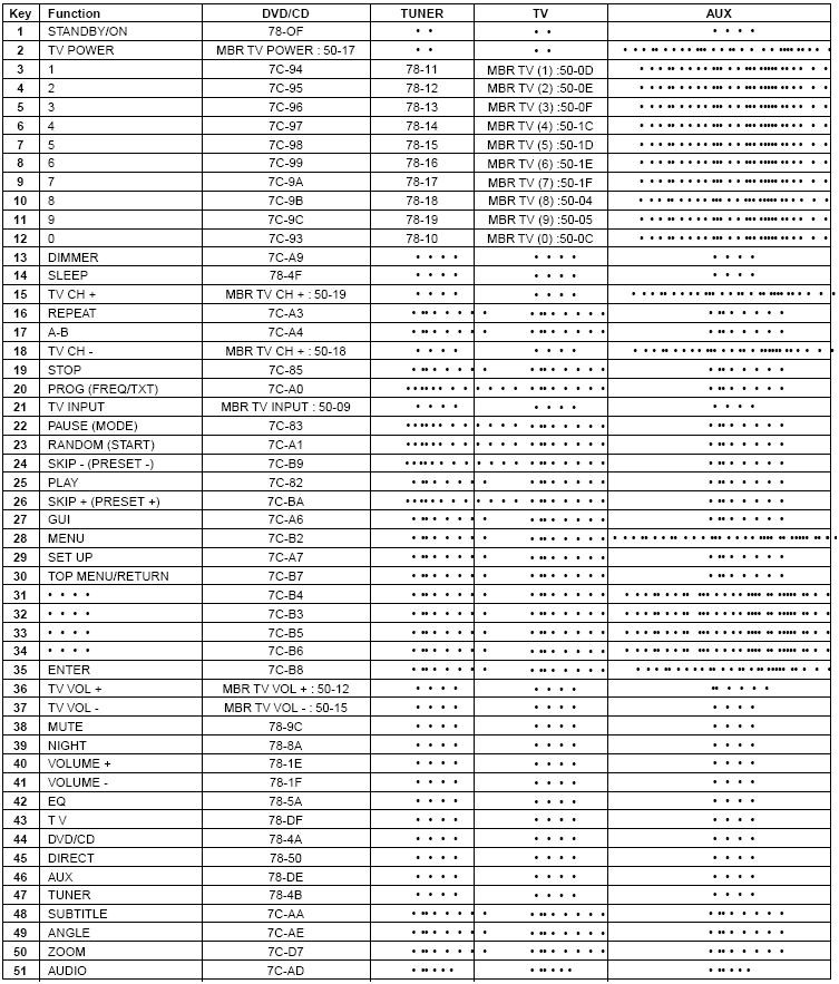 kin369, о да, это они, огромное Спасибо! Только я начальные 3165 изменил на 3155, чтобы очень быстро не переключало. А вот для кнопок громкости поставил 3165, чтобы не нажимать каждый раз заново. Для себя основные функции собрал. Файл с кодами и раскладкой для dvd пульта приложу.
