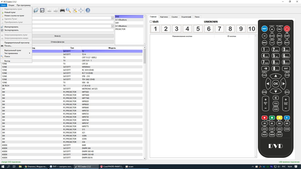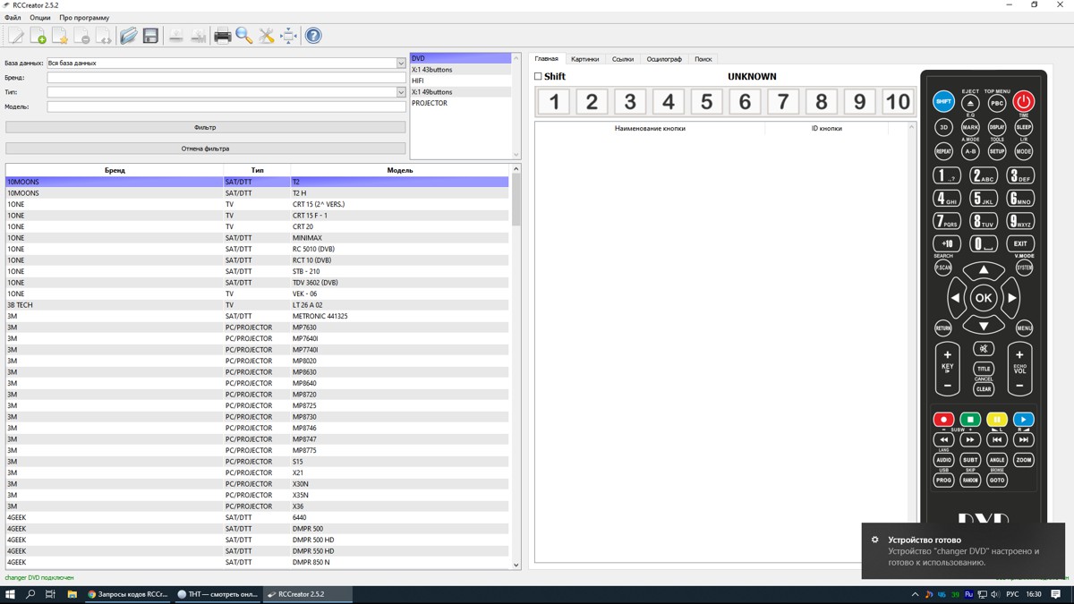 ___ShadowMaster, при подключении пульта и выборе в списке пультов "Тип" DVD (именно для твоего пульта) становится активной функция "Запрограммировать пульт".