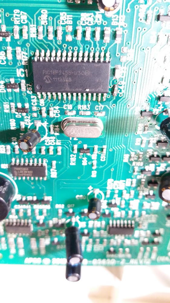 Имеется аппарат APC Back-UPS 650CS, шасси 640-0565D-Z_REV12. Включается и выключается нормально, но работает только от аккумулятора. Не видит 220В. Пробило PIC контроллер, по 12 ноге коротыш на 8 (Vss)