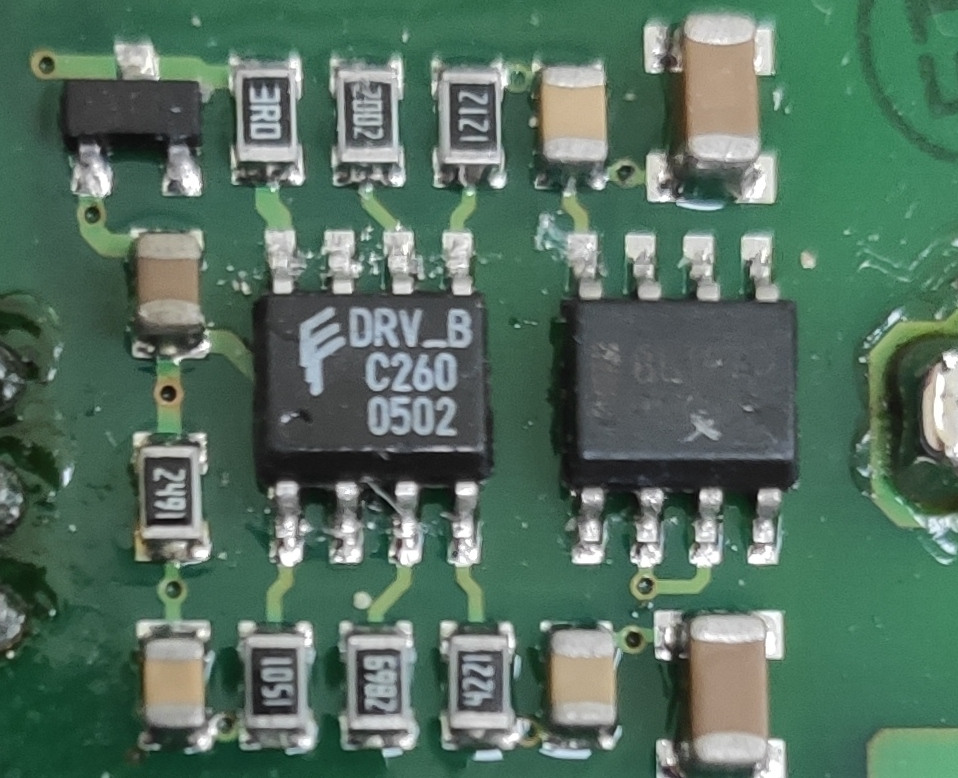 Помогите идентифицировать ( DRV_B) - драйвер мосфета . Выход на гейт транзистор пин 8, вход сигнала пин 4. Питание от рядом стоящей 78L12 . +12V -пин 2 , gnd пин 6.