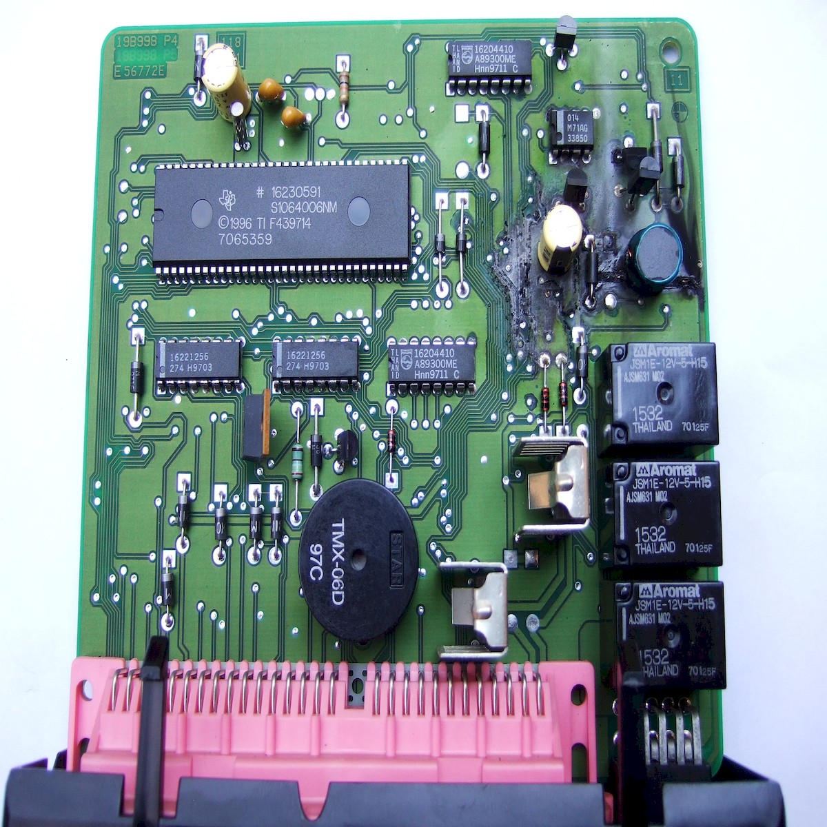 Оригинальный BCM как видно на фото сгорел (и несколько тонких дорожек тоже сгорели). Надо скопировать данные из оригинального BCM/EEPROM в новый BCM.